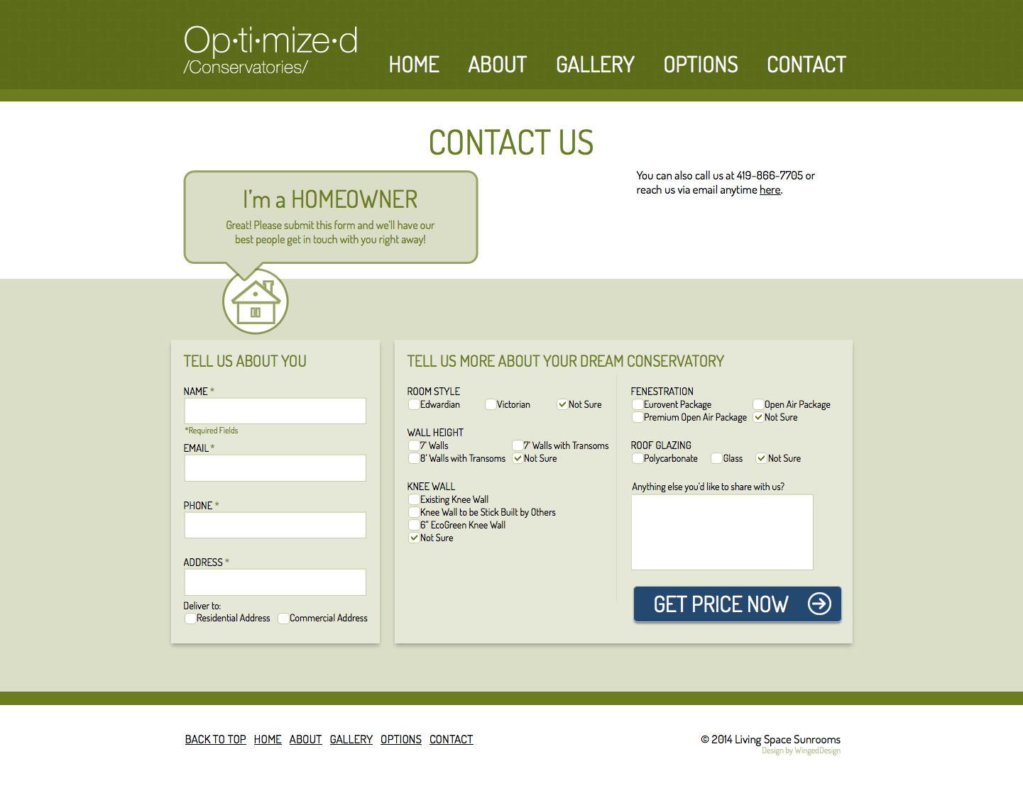 Optimized Conservatories was born from the idea that there was a way to offer the same high-end European conservatories that meet the stringent North American building codes but with a smaller price tag. Optimized Conservatories offers a certain set of room sizes and options that meet the sweet spot of economical manufacturing and yield — and significant savings.